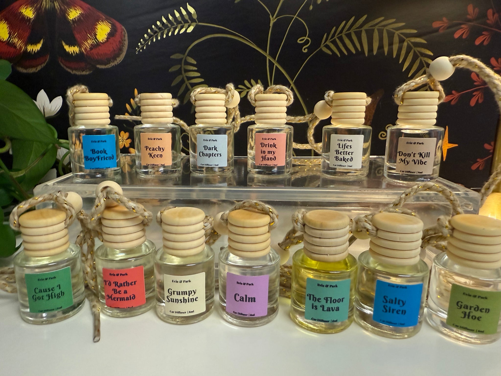 Car Diffusers: Tip upside down for a few seconds to refresh the scent—don’t over-saturate the wooden cap.